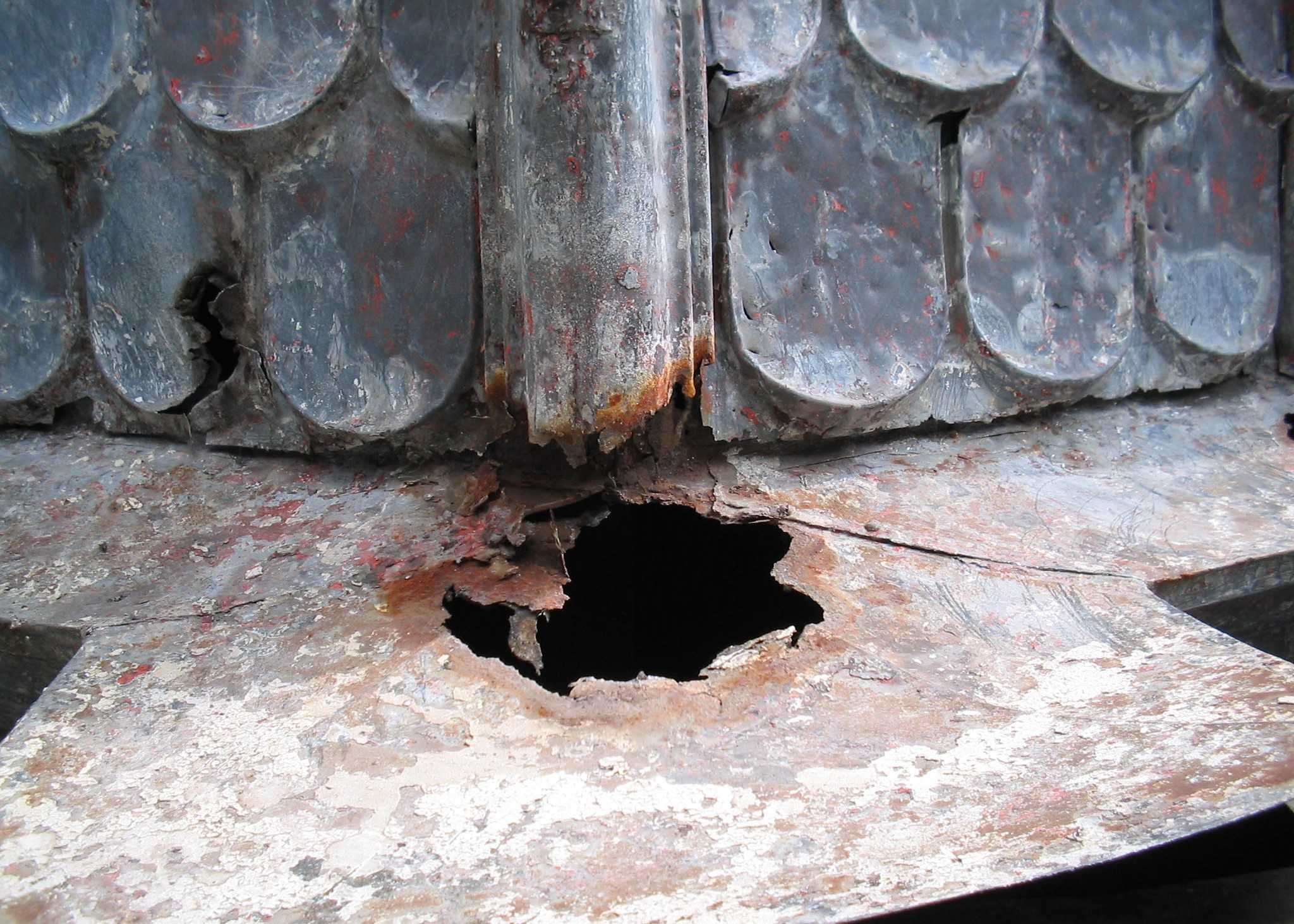 La solution se porta sur un nettoyage approfondis avec récupération des résidus et la réparation avec des trous.